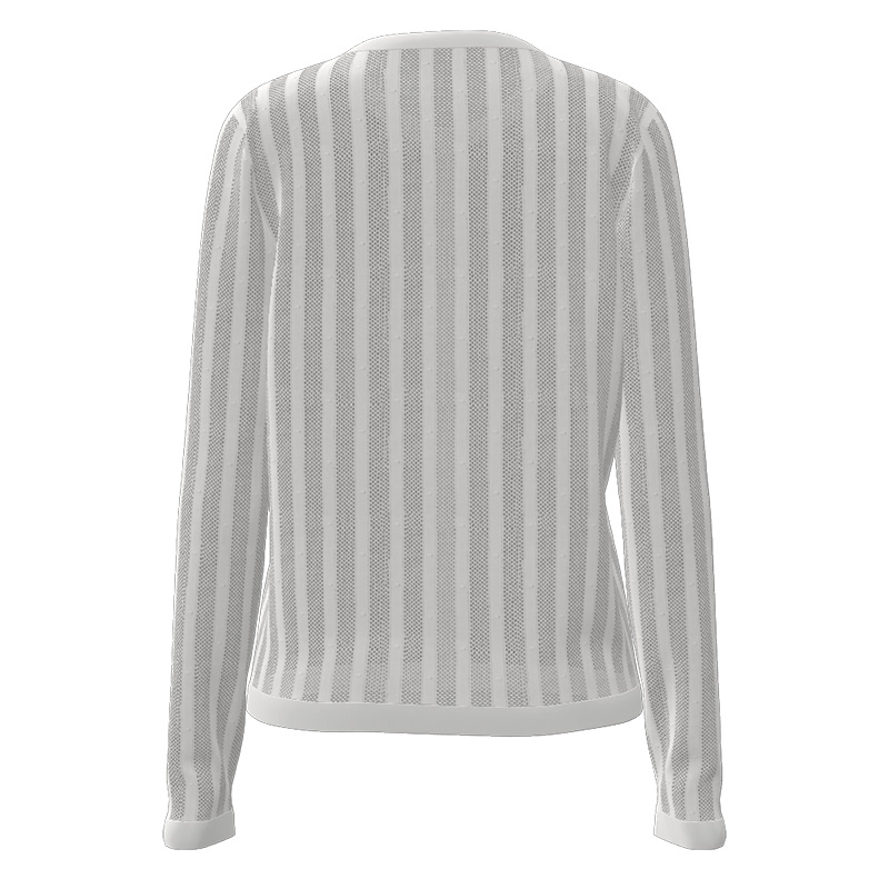 This women's round-neck cardigan is crafted from 100% high-twist cotton, featuring a unique single-side and mesh design that suits various occasions. Here are the detailed advantages: